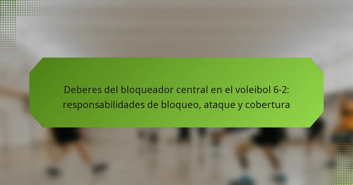 El bloqueador central en un sistema de voleibol 6-2 juega un papel crucial tanto en la ofensiva como en la defensiva, enfocándose principalmente en responsabilidades de bloqueo, ataque y cobertura. Su posición requiere toma de decisiones rápida, comunicación efectiva y una buena colocación para apoyar al equipo durante las jugadas.